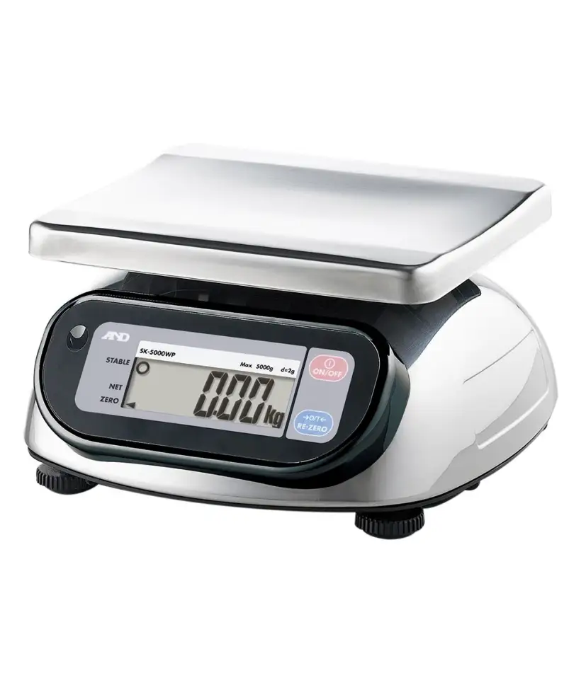 Portable waterproof and dustproof stainless steel bench top food industry scales, ideal for use where a regular complete washdown is required. Powered by 6 x 'D' cells or by optional AC mains adapter. Capacities from 1kg. to 30kg.